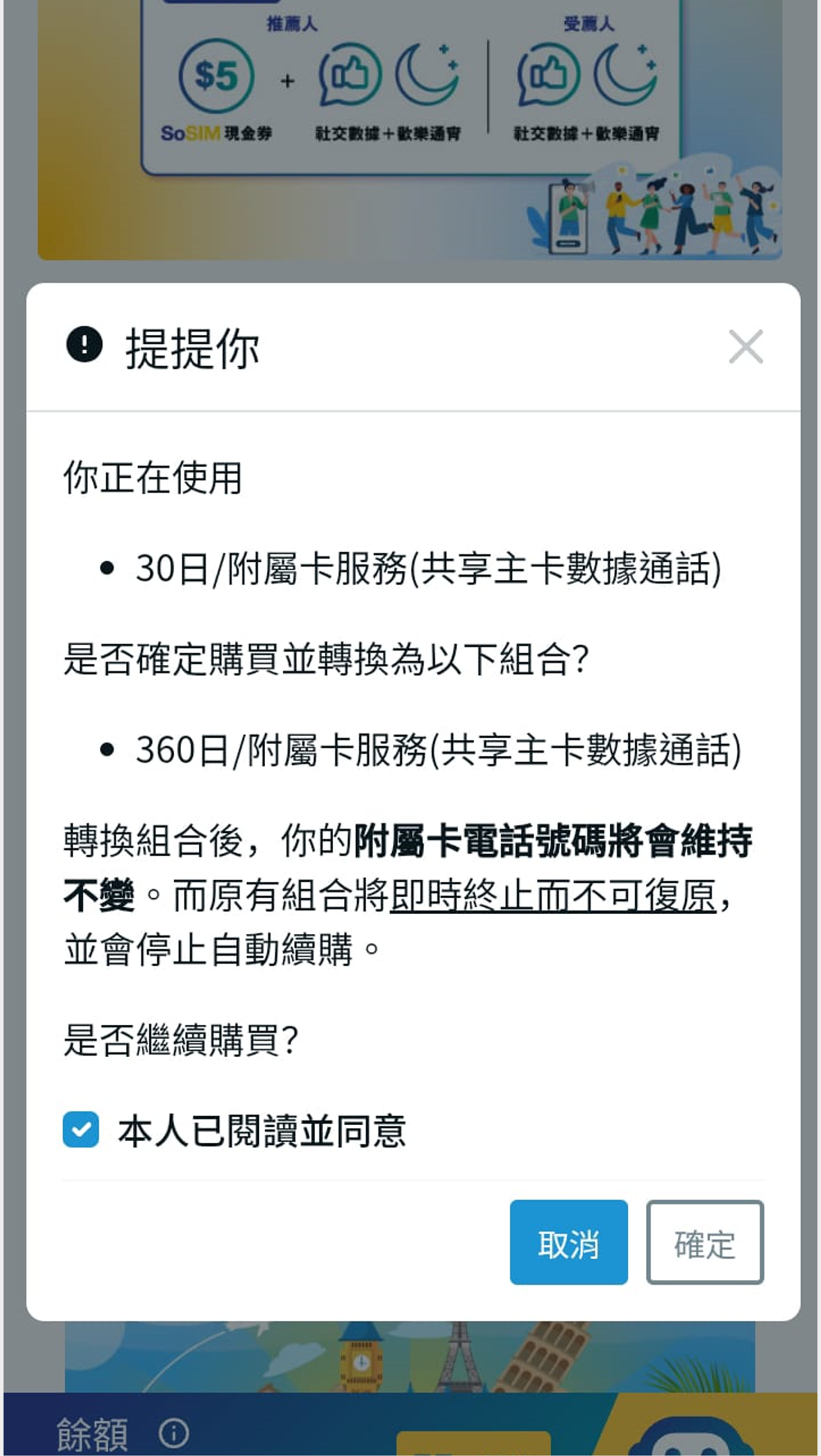 ![]() 3 成功付款後,你的附屬卡會轉換為不同續購周期的組合,而號碼不變