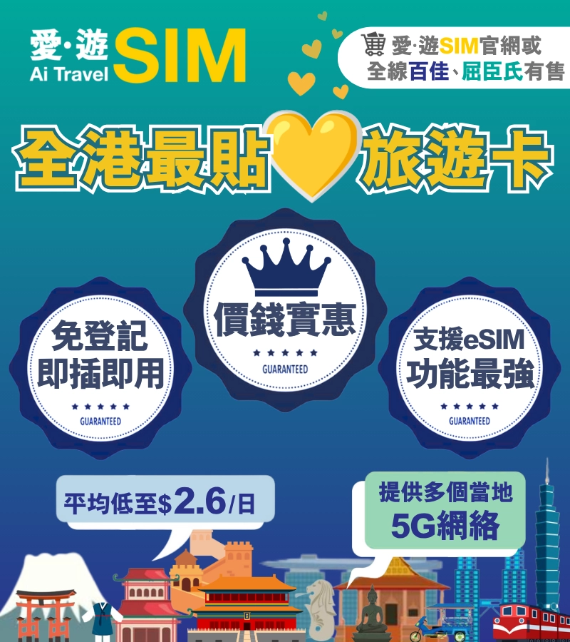 愛.遊SIM有多個組合供你隨心選擇,仲送香港本地數據,返港都唔使換卡住!